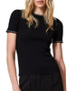 Fitted ribbed jumper crafted from a stretch viscose blend with contrasting detail, a round neckline, short sleeves, and a cut-out at the back. Versatile and stylish, this slim silhouette jumper works as a chic base layer or stand-alone piece for both casual and elevated outfits.