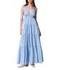 Long cotton poplin dress featuring layered flounces at the skirt and adjustable tie-up shoulder straps for a relaxed, breezy silhouette. Designed with a V-neckline, an empire waistline with soft gathering, and lightweight fabric that moves beautifully with every step. Finished with a heart-shaped metal logo at the back — perfect for summer days, holiday styling or pairing with sandals for elegant evenings.
