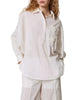 Lightweight muslin blouse featuring charming embroidered flowers and scalloped trims along the neckline and hem. Designed with puff sleeves gathered at the cuffs for a soft, relaxed silhouette and finished with a heart-shaped metal logo at the back — perfect for pairing with denim, linen trousers, or skirts for casual yet refined warm-weather looks.
