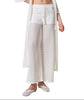 Elegant Sugar White palazzo trousers with delicate openwork crochet and a flowing wide-leg silhouette. Features an elasticated waistband with braided drawstring for a flattering, comfortable fit, plus a soft shorts lining for coverage and ease.