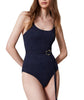 Jacquard one‑piece swimsuit with a delicate leaves and flowers pattern and a removable waist belt featuring an irregular gold‑tone ring for a flattering silhouette. Designed with adjustable wide shoulder straps, a wide front and back neckline, a hook fastening at the back, and a metal heart‑shaped logo detail — perfect for stylish beach or poolside looks.