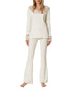 Long pajamas crafted in a soft modal and viscose blend with a warm, cozy feel. Features a long‑sleeve top with scalloped lace trim around the V‑neckline, slits at the cuffs, and scalloped flounce at the hem. Paired with straight‑leg trousers with an elasticated waist and wavy hem for relaxed, comfortable fit. Perfect for lounging at home or cozy evenings in.