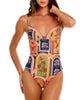 Petra One Piece features intricate handmade details, designed with an underwire for support, a chic back cut-out, and a secure hook-and-eye closure.